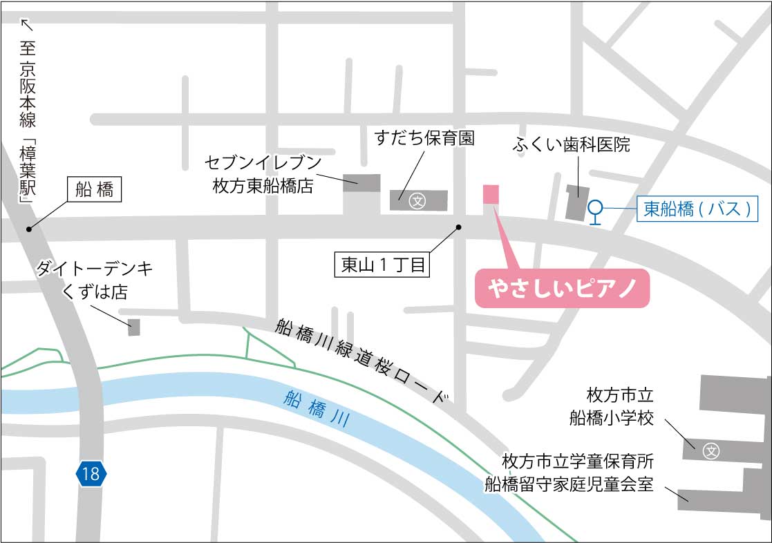 枚方市東船橋に位置する当施設では、一人ひとりに寄り添いながら音楽の楽しみ方のご提案やお手伝いをいたします。"人とのつながり"を大切に、「やさしいピアノ」に関わる人がみんな笑顔になれる支援を志します。